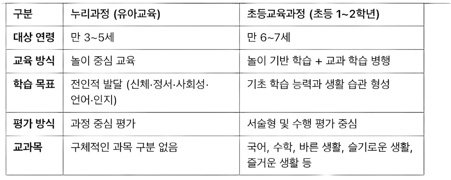 ✅ 누리과정 vs. 초등교육과정 비교
